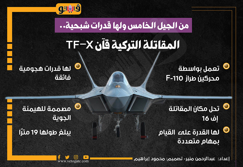 من الجيل الخامس ولها قدرات شبحية.. المقاتلة التركية قآن TF-X (انفوجراف) الخميس 27/يونيو/2024 - 11:55 ص 6/27/2024 11:55:51 AM الطائرة التركية قأن، فيتو عبدالرحمن منير شارك طباعة 18 حجم الخط شارك طباعة المقاتلة التركية الشبحية قآن قدرات شبحية اف 16
