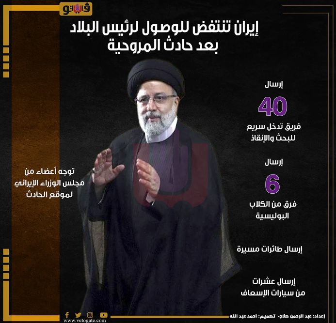 وبحسب شبكة «العربية» الإخبارية، قال وزير الداخلية الإيراني: "لم نتمكن من التواصل مع فريق الرئيس بعد الحادث.. فرق الإنقاذ لا تزال في طريقها لموقع الحادث نظرا لظروف الطقس الصعبة".