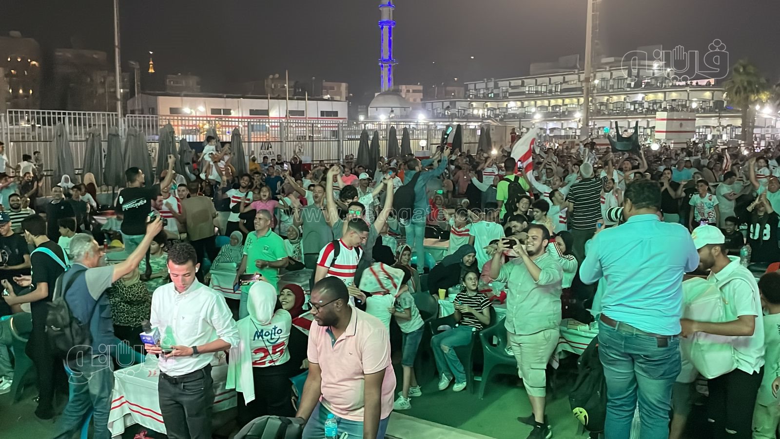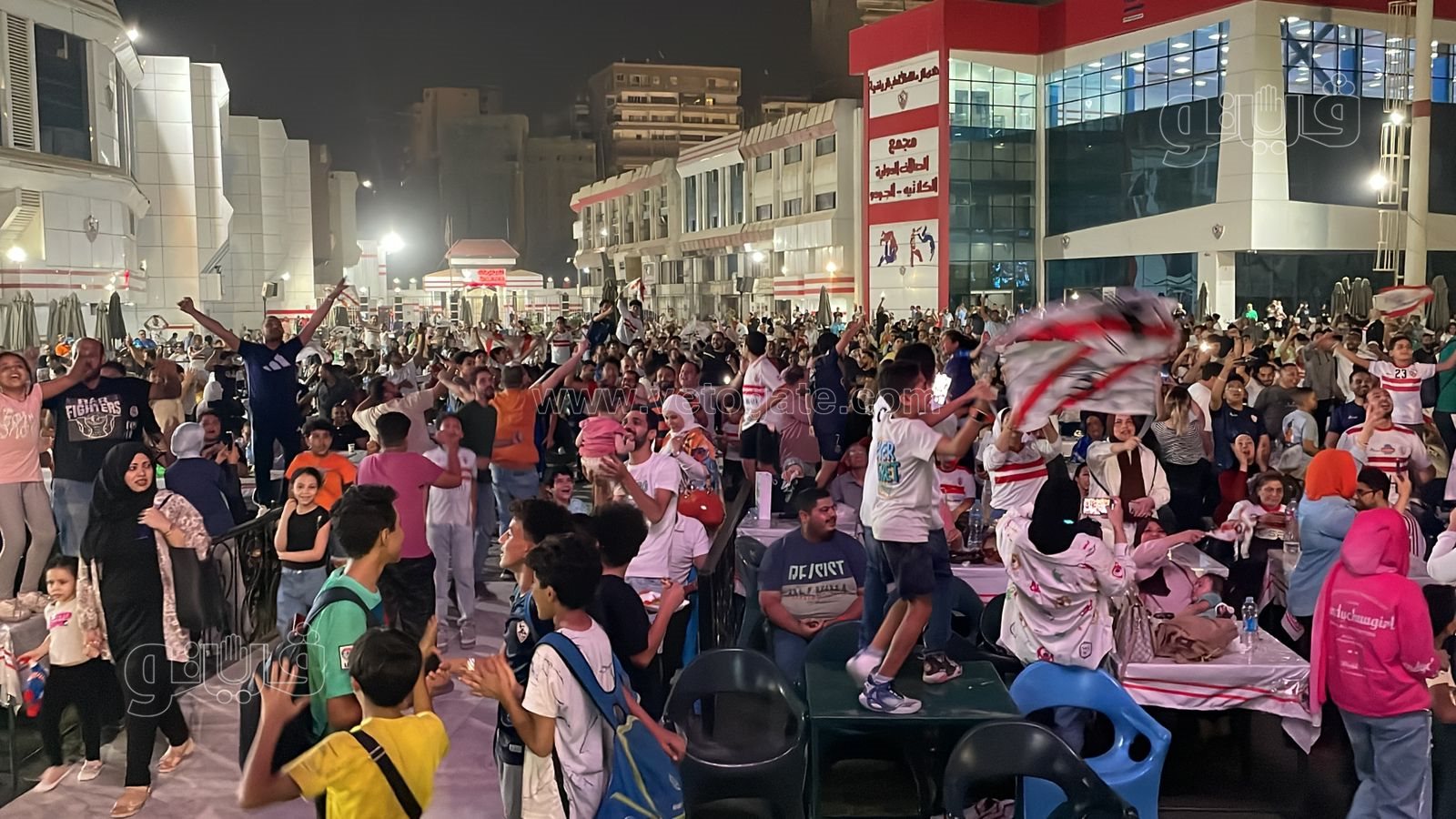 كما شهدت شوارع ميت عقبة المحيطة بالنادي الزمالك احتفالات جماهير الزمالك على المقاهي، بالشماريخ والرقص والغناء فرحا بالكأس.