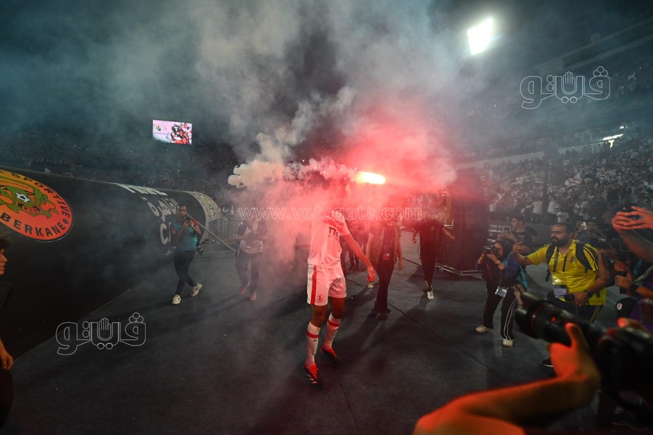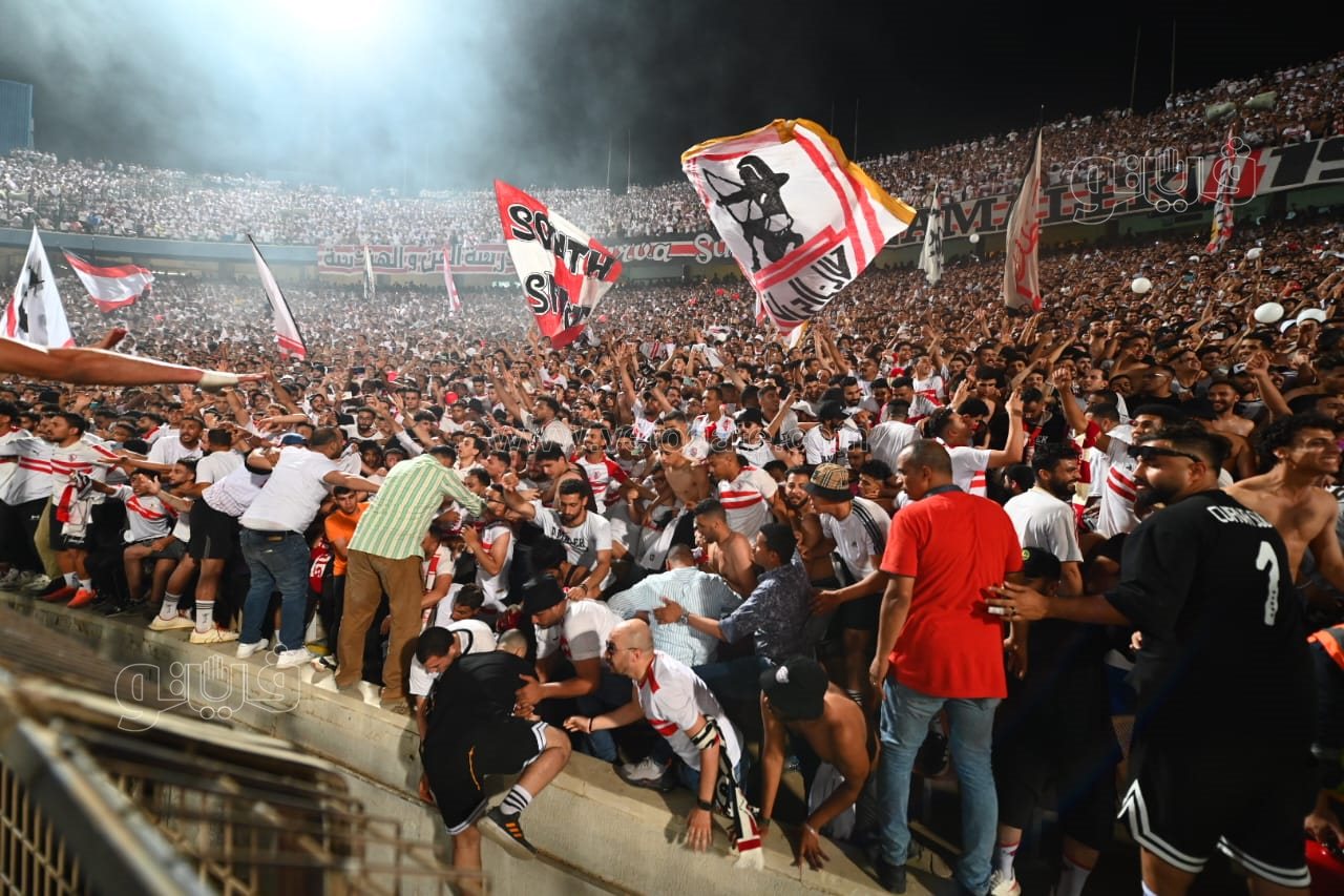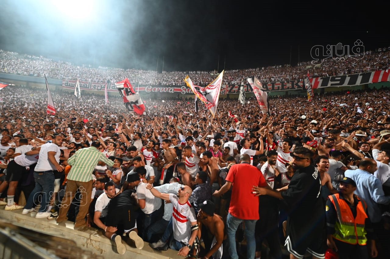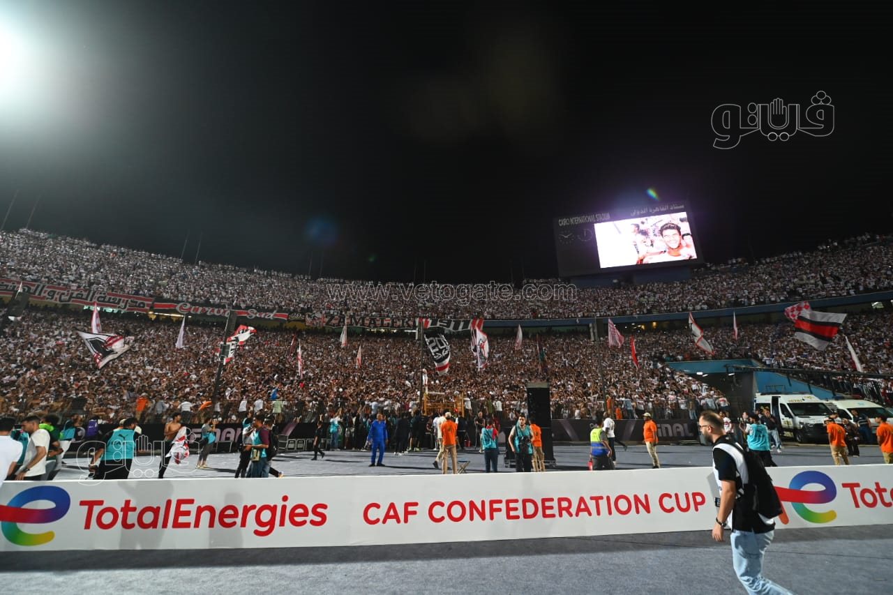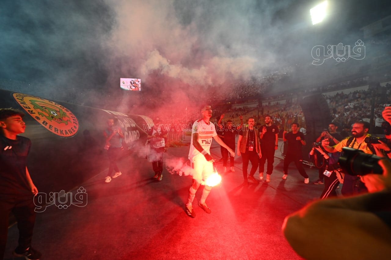 احتفل لاعبو الزمالك بكأس الكونفدرالية رفقة جماهير القلعة البيضاء داخل ملعب ستاد القاهرة بالشماريخ بعد الفوز على نهضة بركان المغربي بهدف دون رد.