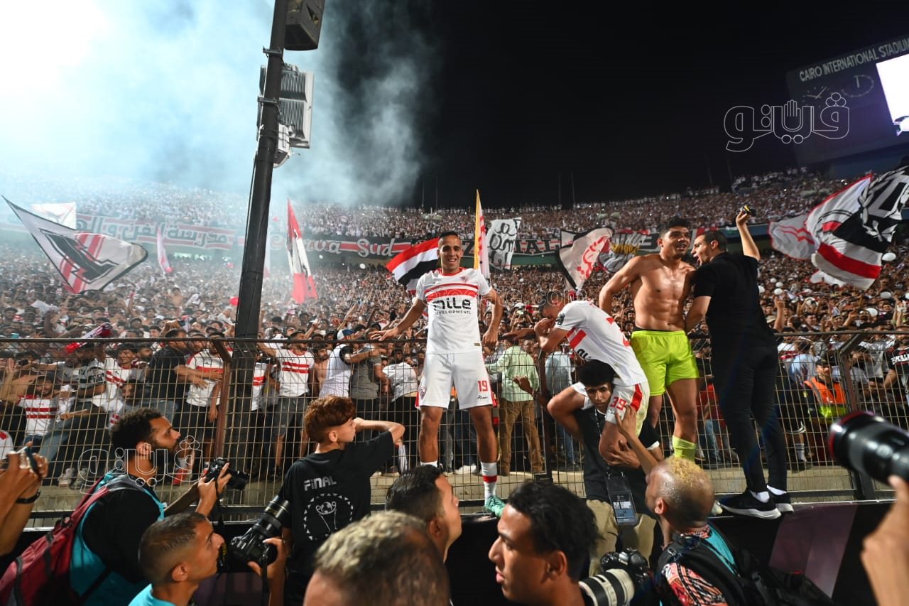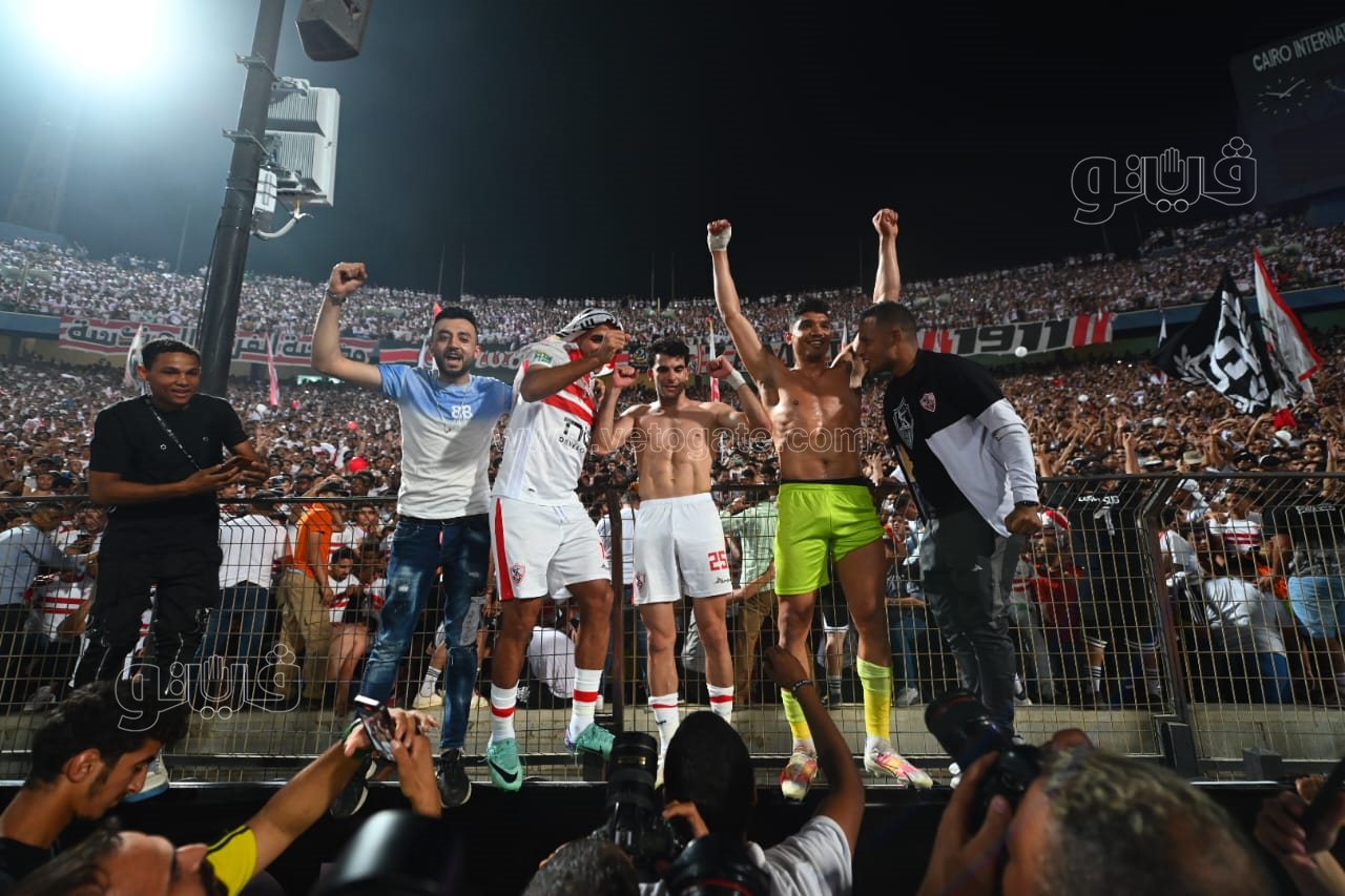 احتفالات نجوم الزمالك بالكونفدرالية مع جمهور الأبيض (صور)