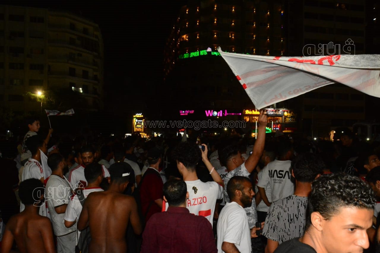 كما شهد محيط نادي الزمالك احتفالات جماهير النادي بالهتافات وخلع التيشرتات والرقص على الاغاني المشجعة للنادي مع إطلاق الشماريخ والألعاب النارية.