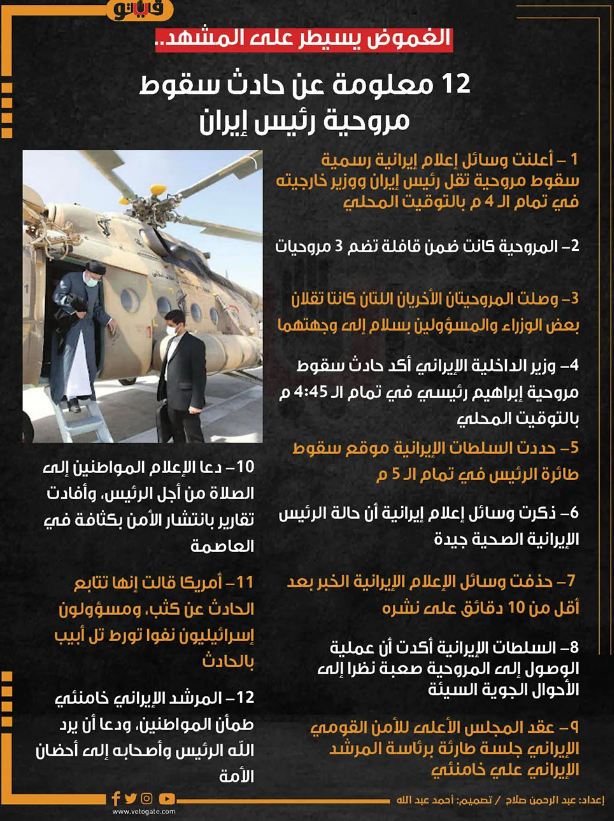 كذلك أعلن الحرس الثوري الإيراني مساء الأحد تحديد موقع سقوط مروحية الرئيس الإيراني إبراهيم رئيسي.