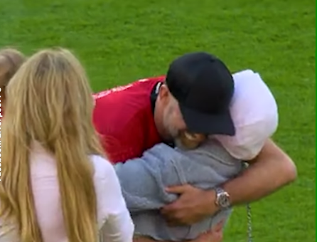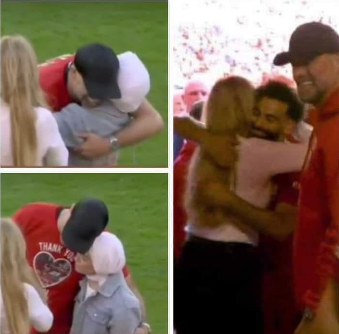 كما عانق محمد صلاح زوجة يورجن كلوب أولا ساندروك، التي ودعها صلاح على غرار مدرب الفريق، حيث اعتادت زوجة كلوب الظهور في المدرجات وتشجيعه بشكل دائم.