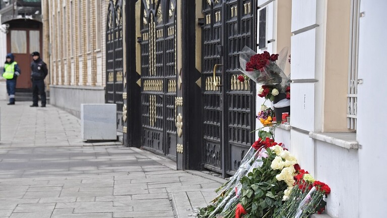 وذكرت وكالة "نوفوستي" أنه من وقت لآخر، تتوافد مجموعات من الناس إلى السفارة الإيرانية في موسكو لوضع الزهور.