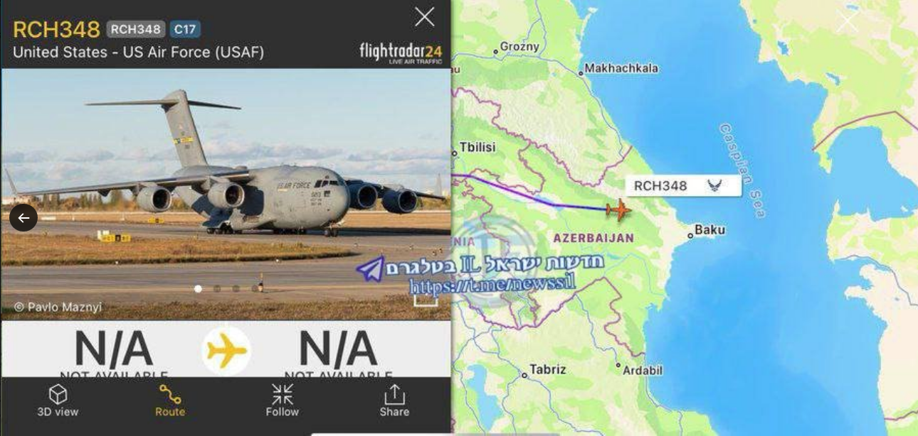 وفور الإعلان عن خبر اختفاء طائرة الرئيس الإيراني، نشر موقع الصين بالعربية حدث وصفه بـ "غير عادي"، حيث كشفت من خلال موقع "فليت رادار24"، الموقع المتخصص فى رصد حركة الملاحة الجوية في العالم، مزاعم برصد طائرة من طراز C-17 تابعة للقوات الجوية الأمريكية في أذربيجان، غادرت مع اختفاء طائرة رئيسي نحو أجواء إسرائيل.