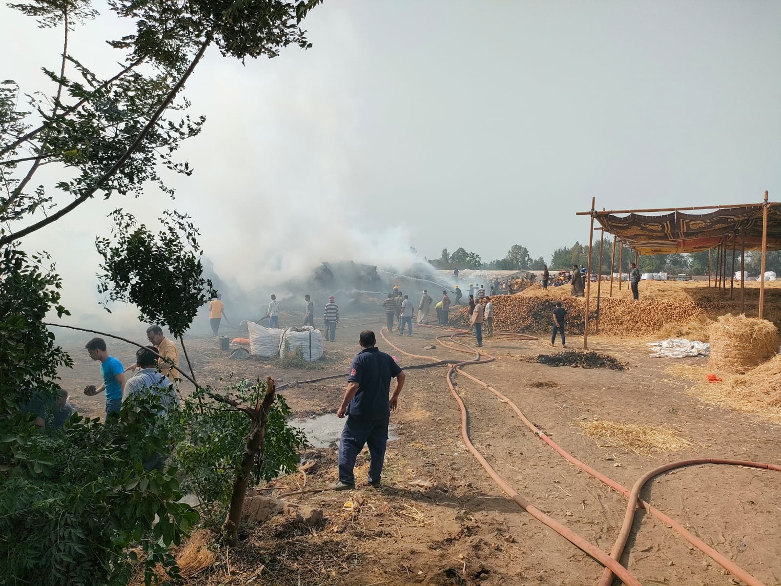 شهد طريق "زفتى-طنطا" بمدخل قرية نهطاي التابعة لمركز ومدينة زفتى في محافظة الغربية حريقا ضخما نشب داخل قطعة أرض زراعية بمحصول قش الأرز المستخدم في غطاء شادر البطاطس وتم الدفع بسيارات إطفاء للسيطرة علي الحريق.