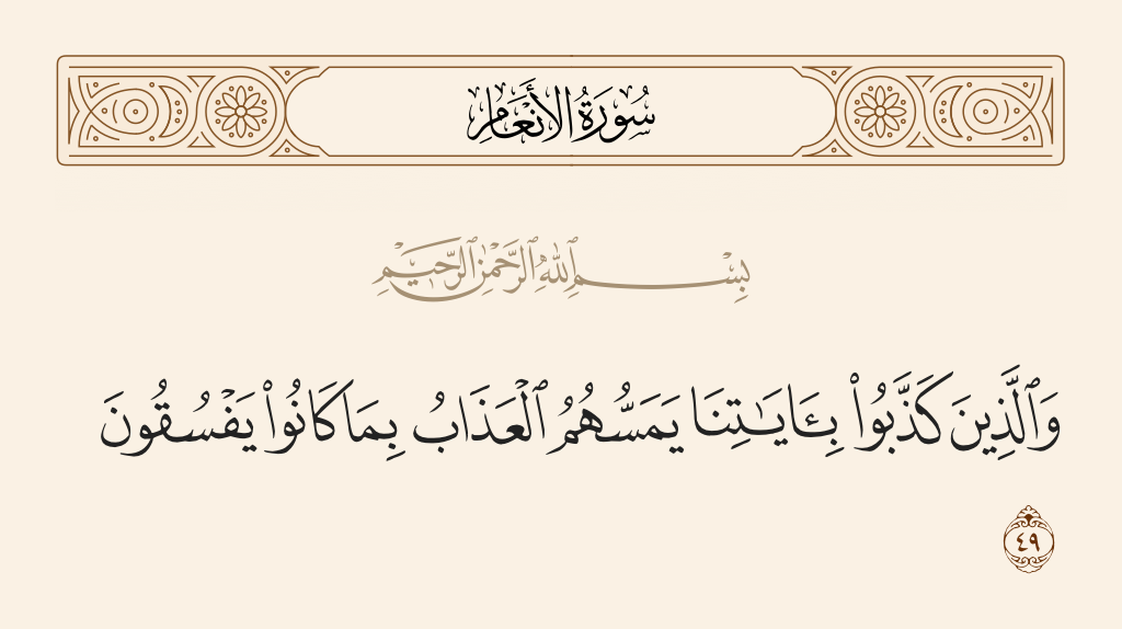 قال تعالى: «وَالَّذِينَ كَذَّبُوا بِآيَاتِنَا يَمَسُّهُمُ الْعَذَابُ بِمَا كَانُوا يَفْسُقُونَ».