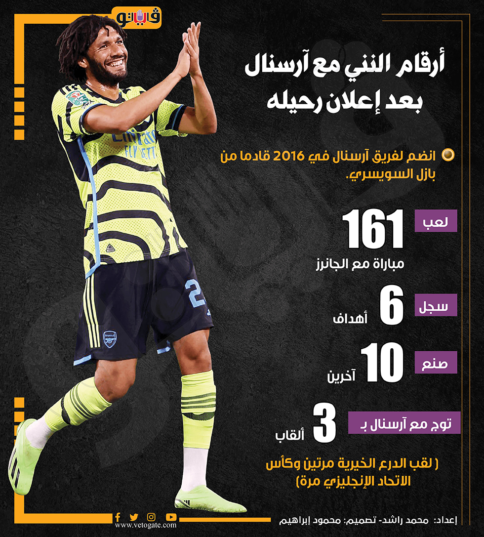 وكان محمد النني لاعب وسط آرسنال، قرر الرحيل عن النادي الإنجليزي بشكلٍ رسمي بنهاية الموسم الحالي.