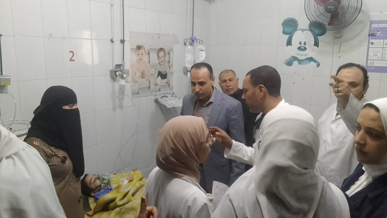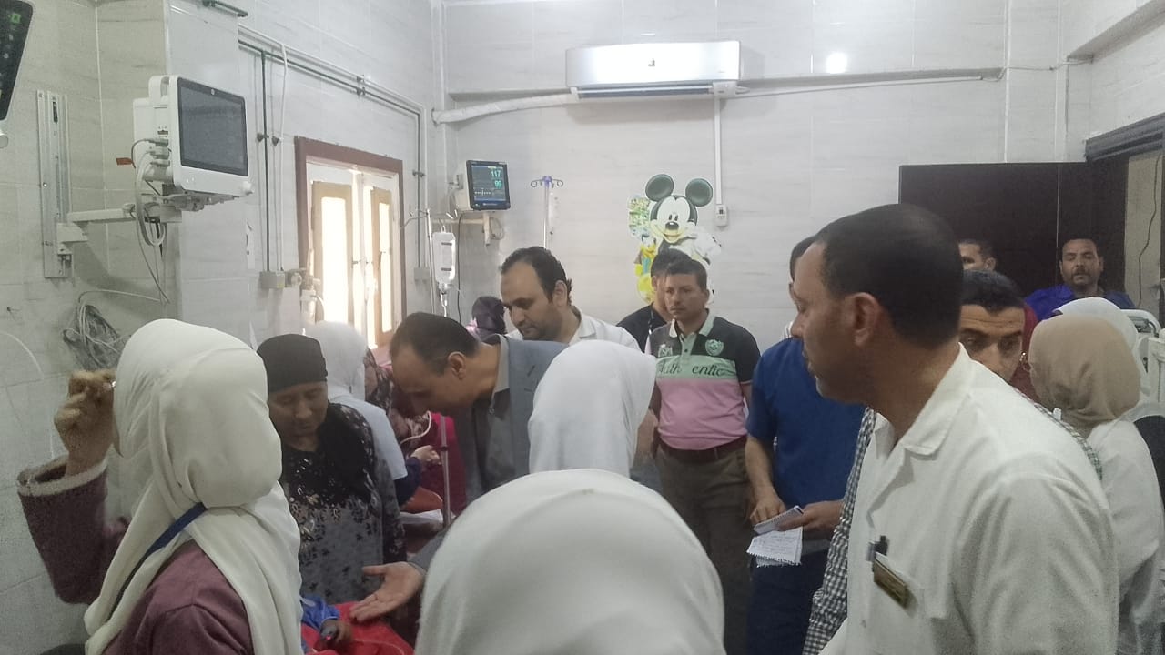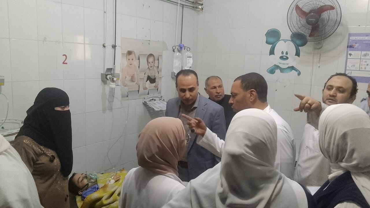 وكيل وزارة الصحة بالبحيرة يتفقد الأطفال المصابين في حادث انقلاب سيارة بترعة أبو حمص