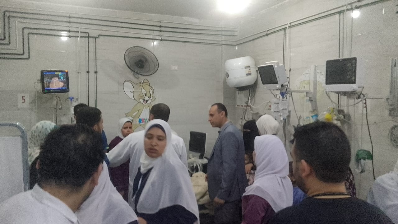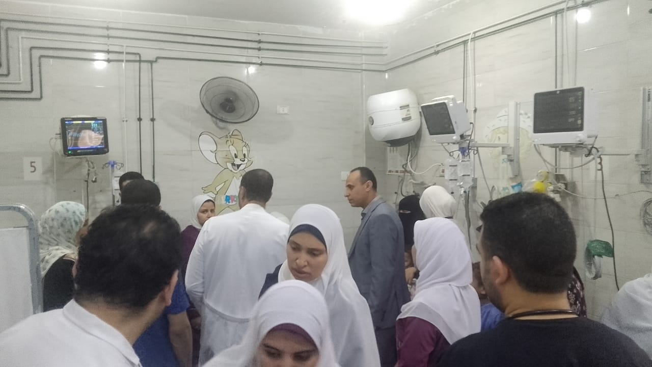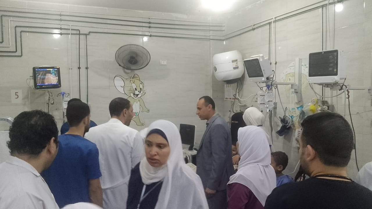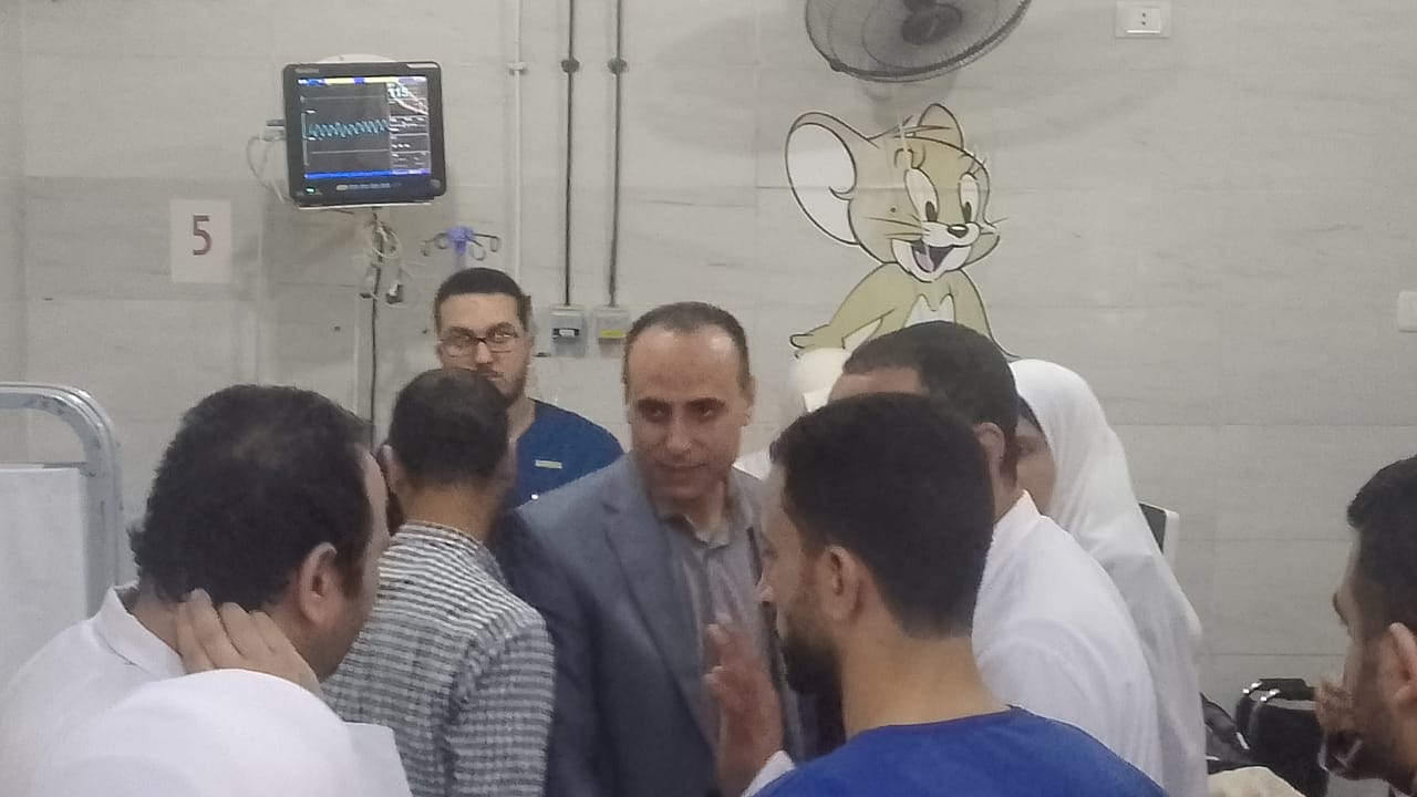وكيل وزارة الصحة بالبحيرة يتفقد الأطفال المصابين في حادث انقلاب سيارة بترعة أبو حمص