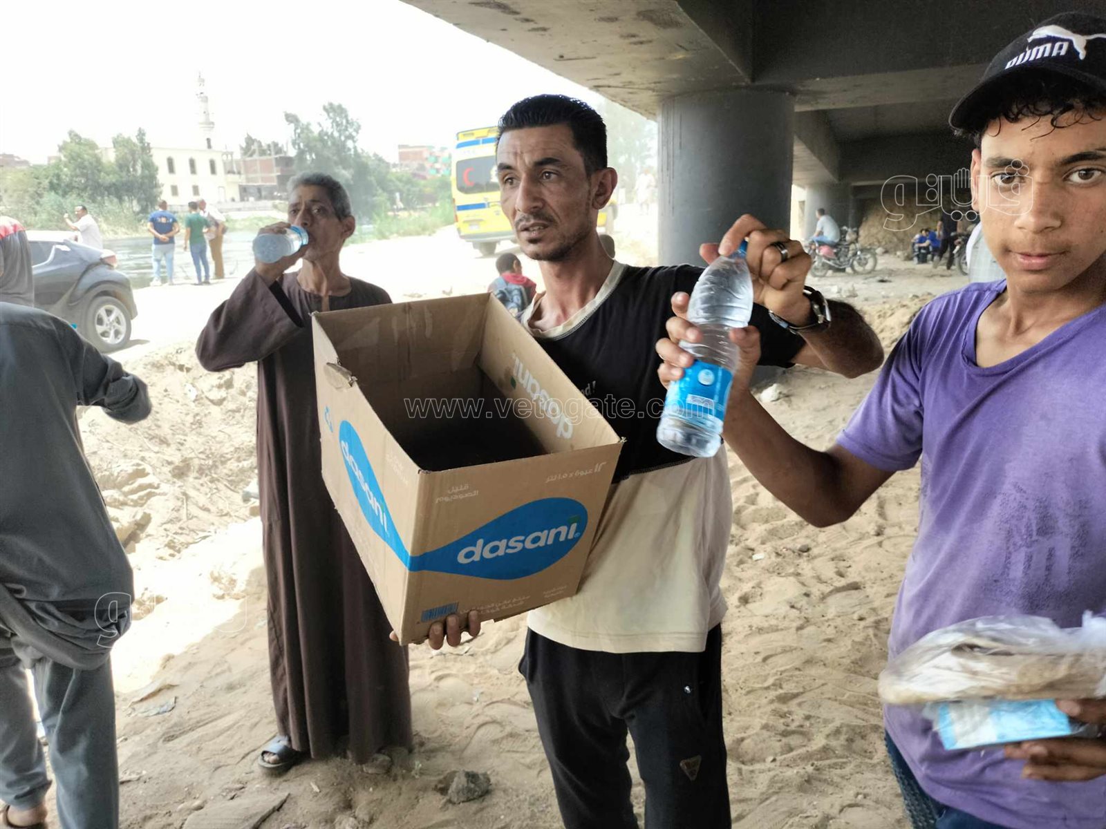شاب يوزع المياه والطعام على المشاركين في البحث عن جثامين ضحايا معدية أبو غالب (فيديو وصور)