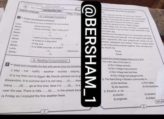 أسئلة امتحانات الشهادة الإعدادية 2024