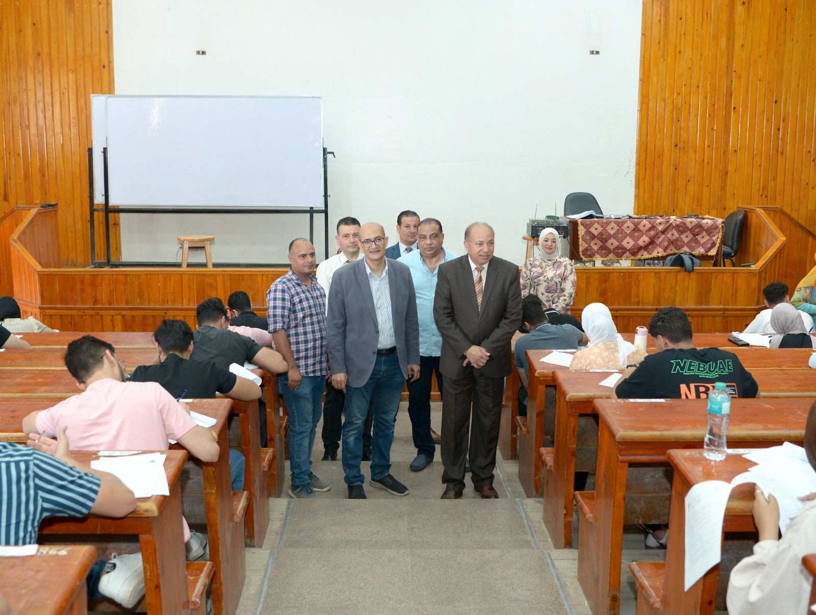 و شدد رئيس الجامعة خلال جولته على الالتزام بالإجراءات التنظيمية لأعمال الامتحانات واتخاذ كل التدابير اللازمة لضمان حسن سير أعمال الامتحانات ومواجهة أي إهمال أو تقصير أو أعمال من شأنها الاخلال بعملية الامتحانات بكل شدة وفقًا لأحكام قانون تنظيم الجامعات ولائحته التنفيذية.