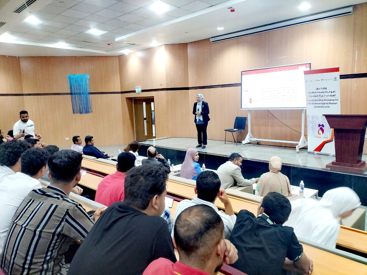 نظمت وحدة مناهضة العنف ضد المرأة بجامعة أسيوط الجديدة التكنولوجية بالتعاون مع المجلس القومي للمرأة؛ ندوة توعوية بعنوان "القوانين المُعدلة لصالح المرأة، وطرق التعامل مع حالات العنف والتعافي" وذلك تحت رعاية الدكتور جمال تاج عبدالجابر رئيس جامعة أسيوط الجديدة التكنولوجية، وإشراف الدكتور على محمد يوسف نائب رئيس الجامعة لشئون التعليم والطلاب.