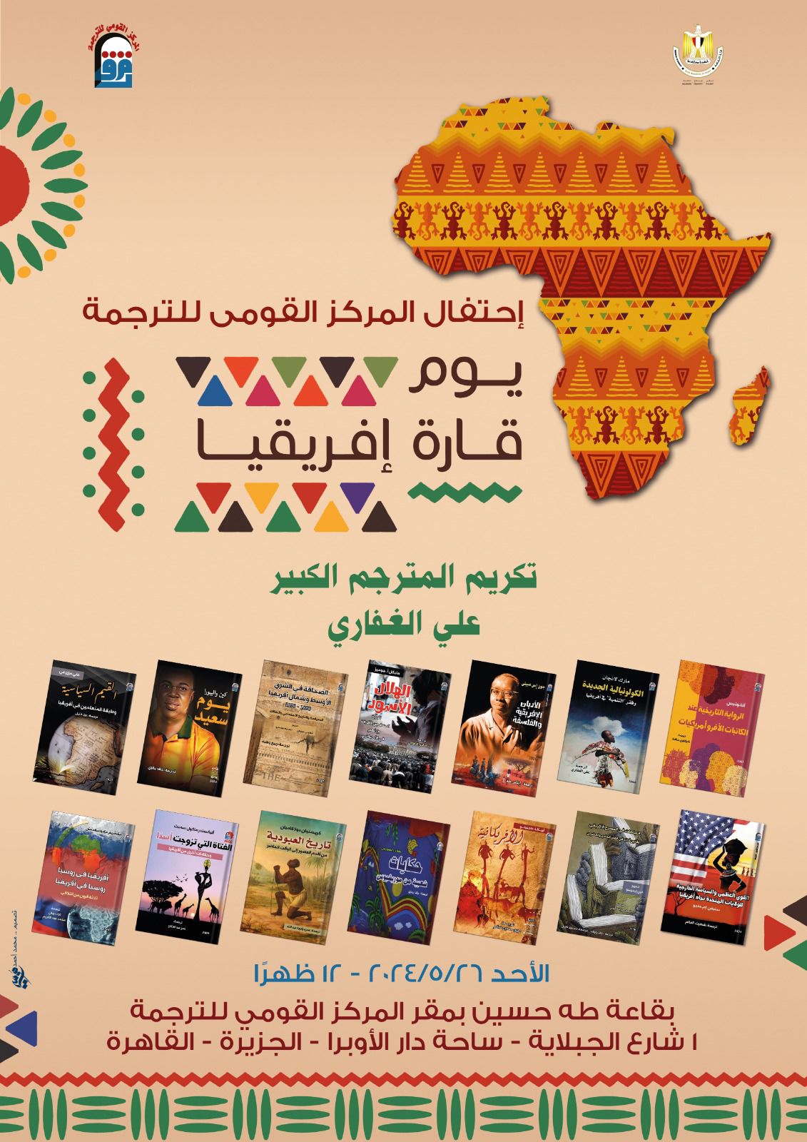 أعلن المركز القومي للترجمة برئاسة الدكتورة كرمة سامي عن فعاليات اليوم العالمي لقارة أفريقيا والذي سوف يتم الاحتفال به يوم الأحد المقبل الموافق 26 مايو 2024، في تمام الساعة 12 ظهرًا بقاعة طه حسين بمقر المركز القومي للترجمة.