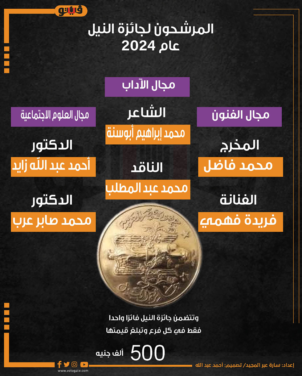 المرشحون لجائزة النيل عام 2024 (إنفوجراف) الأربعاء 22/مايو/2024 - 11:30 م 5/22/2024 11:30:11 PM جائزة النيل سارة عبد المجيد شارك طباعة 18 حجم الخط شارك طباعة المرشحون لجائزة النيل لعام 2024 جائزة النيل جائزة النيل 2024