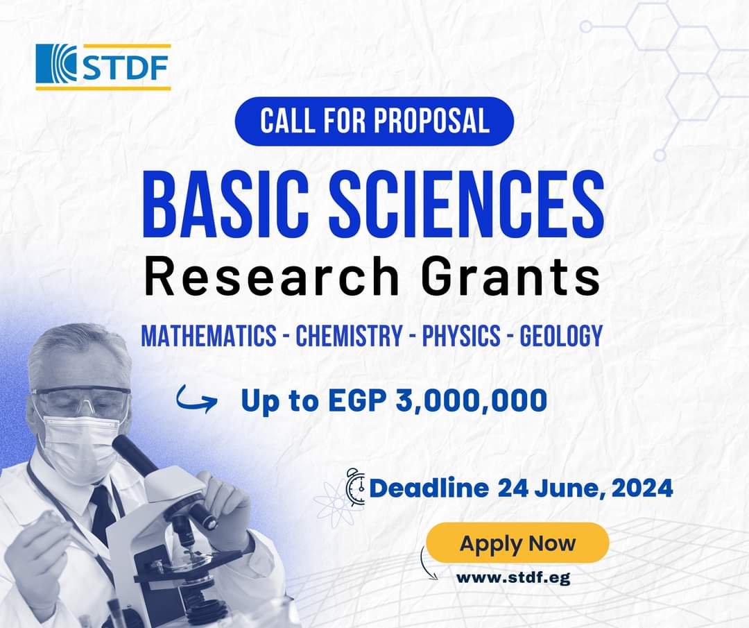 أعلنت هيئة تمويل العلوم والتكنولوجيا والابتكار (STDF)، عن فتح باب التقدم للنداء البحثي الثالث لمنحة العلوم الأساسية، التي تهدف إلى تحفيز البحث العلمي في مجال العلوم الأساسية وبناء مجموعات بحثية مُبتكرة قادرة على مواجهة التحديات وسد الفجوة التكنولوجية والمُساهمة في بناء قاعدة علمية قوية في العلوم الأساسية، مما ينعكس إيجابيًا على مستوى البحث العلمي، وأثره في مصر.