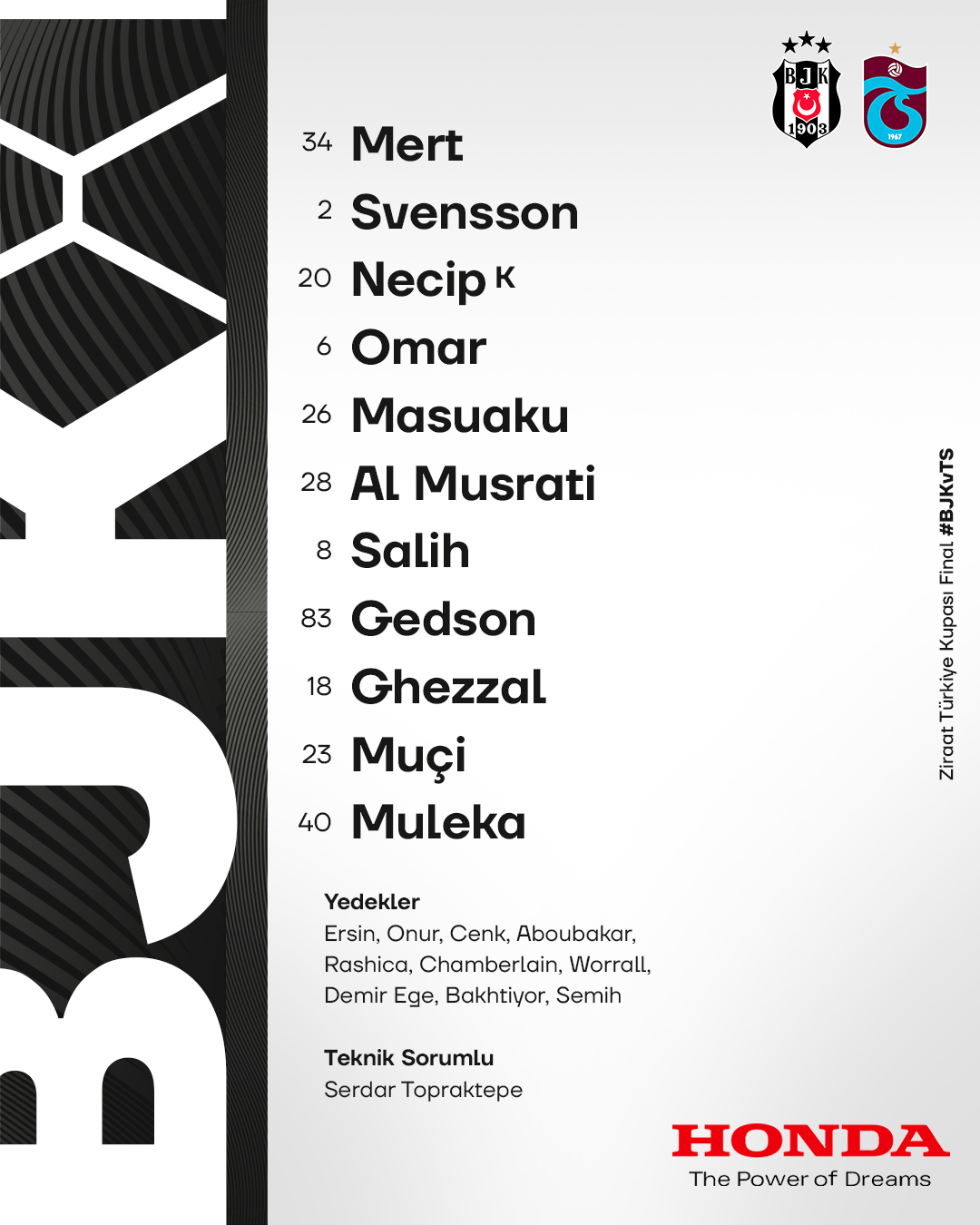 سجل النيجيري باول أونواتشو هدف طرابزون سبور في مرمى بشكتاش في الدقيقة 13، وتعادل الجزائري رشيد غزال لفريق بشكتاش من ضربة جزاء في الدقيقة 45+3.