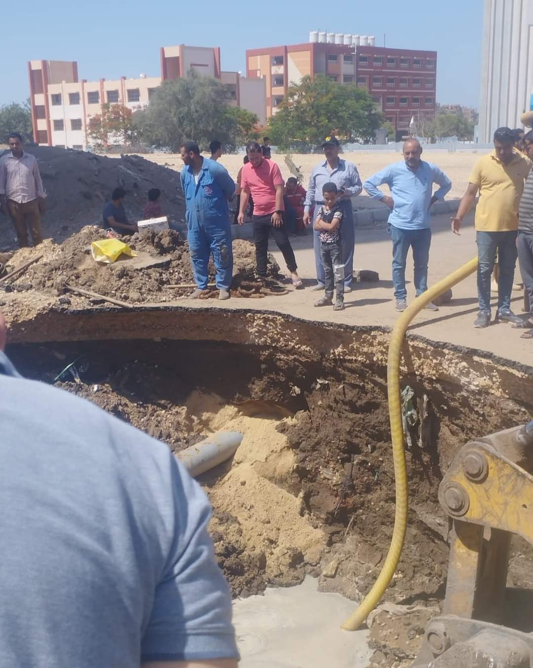 وبالفحص تبين انفجار في خط مياه 12 بوصة وخط مياه 4 بوصات وخط الطرد بالمحطة الرئيسية، مما أدى إلى حدوث هبوط أرضي بـ شارع جسر النيل .