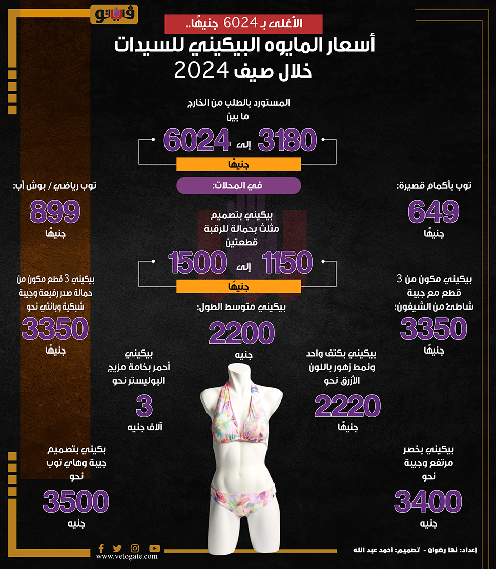 الأغلى بـ 6024 جنيهًا.. أسعار المايوه البيكيني للسيدات خلال صيف 2024 (انفوجراف) الأحد 26/مايو/2024 - 03:02 م 5/26/2024 3:02:33 PM أسعار المايوه البيكيني خلال صيف 2024، فيتو نها رضوان شارك طباعة 18 حجم الخط شارك طباعة سعر المايوه أسعار المايوه سعر البيكيني أسعار البيكيني سعر المايوه البيكيني أسعار المايوه بكيني أسعار المايوهات 2024 سعر المايوهات 2024 موضة المايوهات 2024 مايوه بكيني مايوه بيكيني