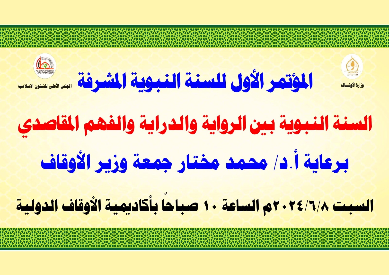 تعقد وزارة الأوقاف مؤتمرها الأول عن السنة النبوية بعنوان: السنة النبوية بين الرواية والدراية والفهم المقاصدي، بمشاركة أكثر من 30 أستاذًا وعالمًا في علم الحديث.