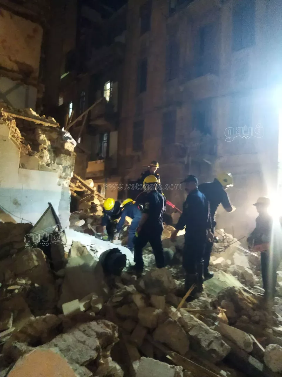 وتواصل قوات الحماية المدنية البحث عن الضحايا والمصابين أسفل العقار، كما تساعد الأهالي العالقين على الخروج من العقار، وسط تواجد قوات الأمن والإسعاف ومسئولي الحي بمحيط الحادث.