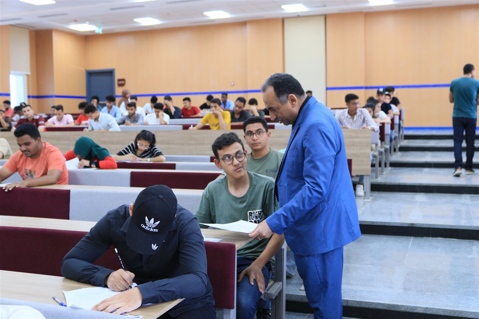 وتابع الدكتور عادل زين الدين، سير الامتحانات، واستمع إلى آراء الطلاب حول مستوى الامتحانات ومدى وضوحها، كما وجه الشكر والتقدير لجميع أعضاء هيئة التدريس المشرفين على الامتحانات، والعاملين في مختلف الإدارات، على جهودهم المتميزة في سبيل توفير أجواء مناسبة للطلاب لأداء الامتحانات.