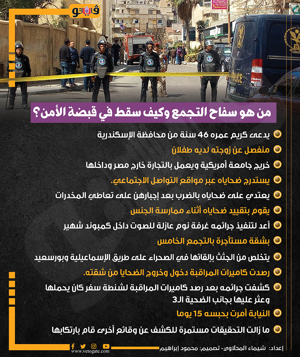 من هو سفاح التجمع وكيف سقط في قبضة الأمن؟ (إنفوجراف) السبت 25/مايو/2024 - 04:35 م 5/25/2024 4:35:55 PM القبض على سفاح التجمع شيماء المحلاوي شارك طباعة 18 حجم الخط شارك طباعة التجمع الخامس الاسماعيلية الاسكندرية شنطة سفر طريق الاسماعيلية محافظة الإسكندرية من هو سفاح التجمع ممارسة الجنس