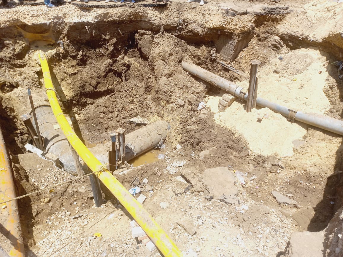 وبالفحص تبين انفجار في خط مياه 12 بوصة وخط مياه 4 بوصات وخط الطرد بالمحطة الرئيسية، مما أدى إلى حدوث هبوط أرضي بـ شارع جسر النيل .