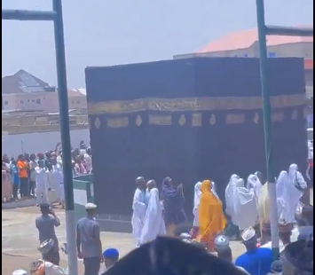 الكعبة، تداول نشطاء مواقع التواصل الاجتماعي مقطع فيديو يظهر طواف العشرات من الناس حول كعبة جديدة تم بناؤها في نيجيريا، حيث يظهر الذين يطوفون بالمجسم وهم يرتدون ملابس الإحرام وكانوا يرددون "لبيك اللهم لبيك...".