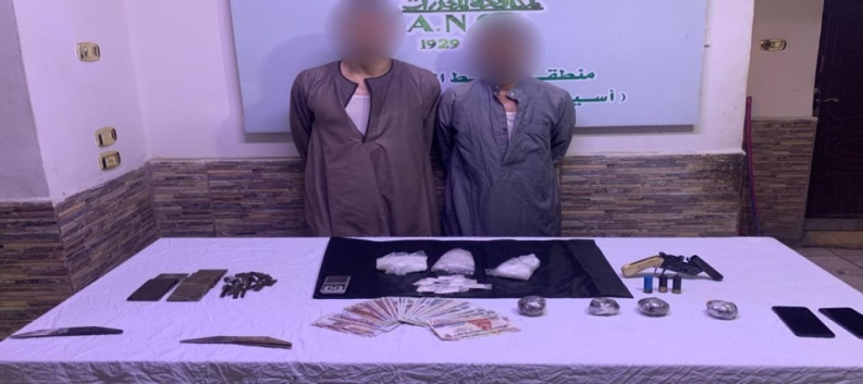 كماتم ضبط (عنصرين إجراميين) بدائرة مركز شرطة أسيوط بمحافظة أسيوط.. وبحوزتهما (4 كيلو جرامات لمخدر الآيس "شابو" – 2 كيلو جرام من مخدر الأفيون – 1 كيلو جرام من مخدر الحشيش – فرد خرطوش وعدد من الطلقات – 2 دراجة نارية "بدون لوحات معدنية" – 2 سلاح أبيض – ميزان حساس).