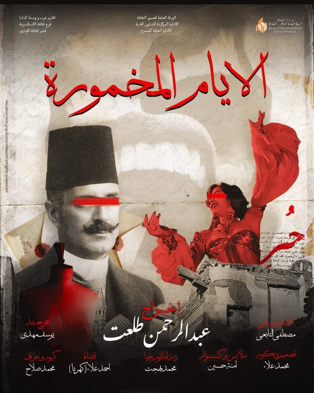 ويعرض في الثامنة مساءً، العرض المسرحي الثاني "الأيام المخمورة"، لفرقة قصر ثقافة القباري، تأليف الكاتب سعد الله ونوس، وإخراج عبد الرحمن طلعت.