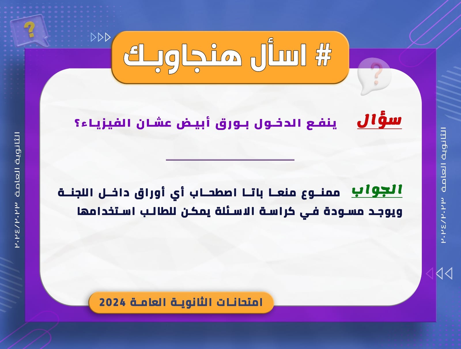 وكانت وزارة التربية والتعليم والتعليم الفني، قد وجهت رسالة مهمة وعاجلة لجميع أولياء أمور وطلاب الثانوية العامة 2024، عبر صفحتها الرسمية على موقع التواصل الاجتماعي فيس بوك.
