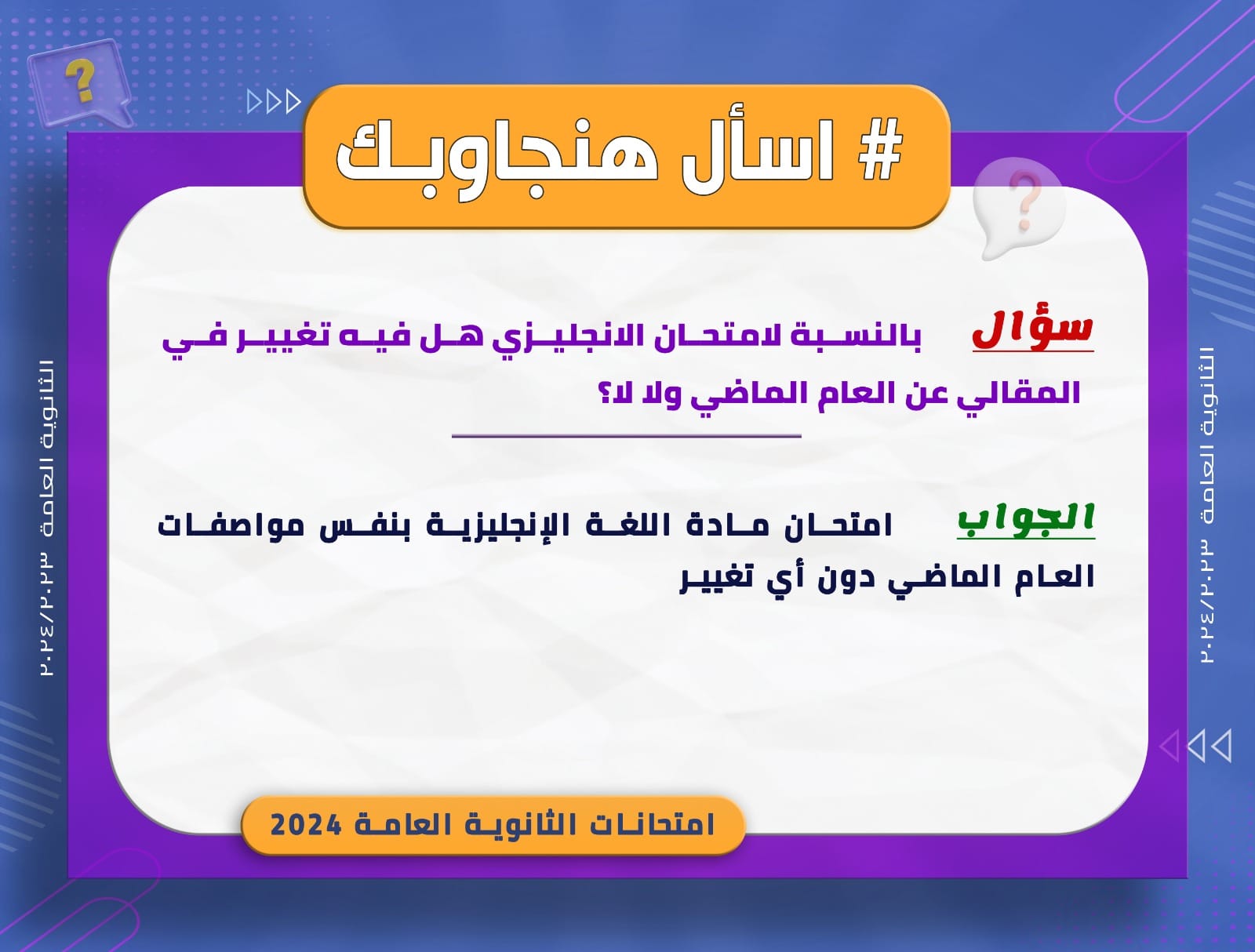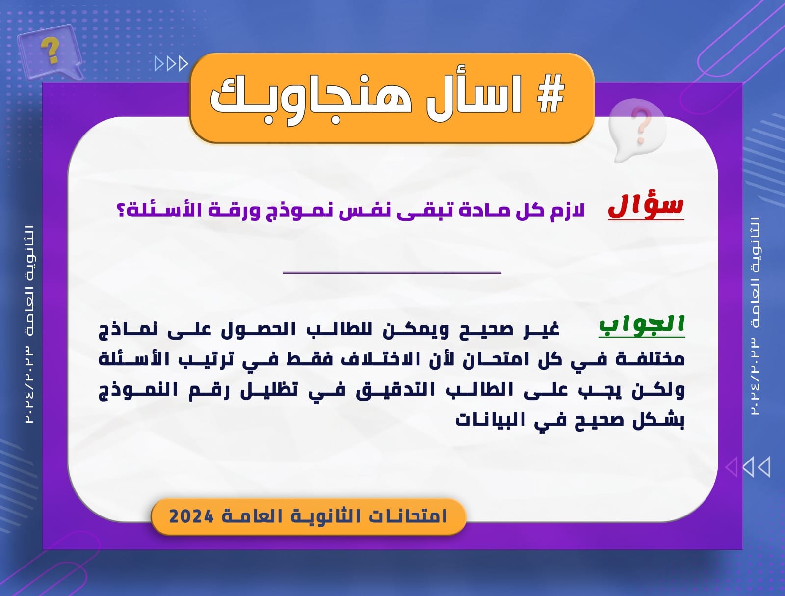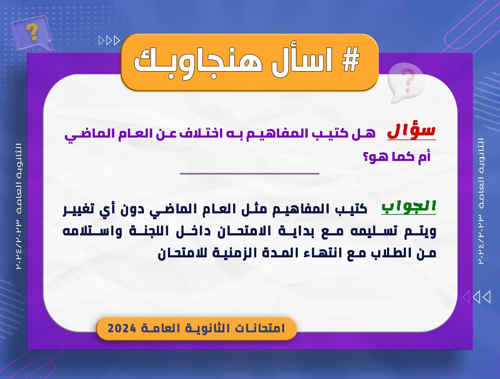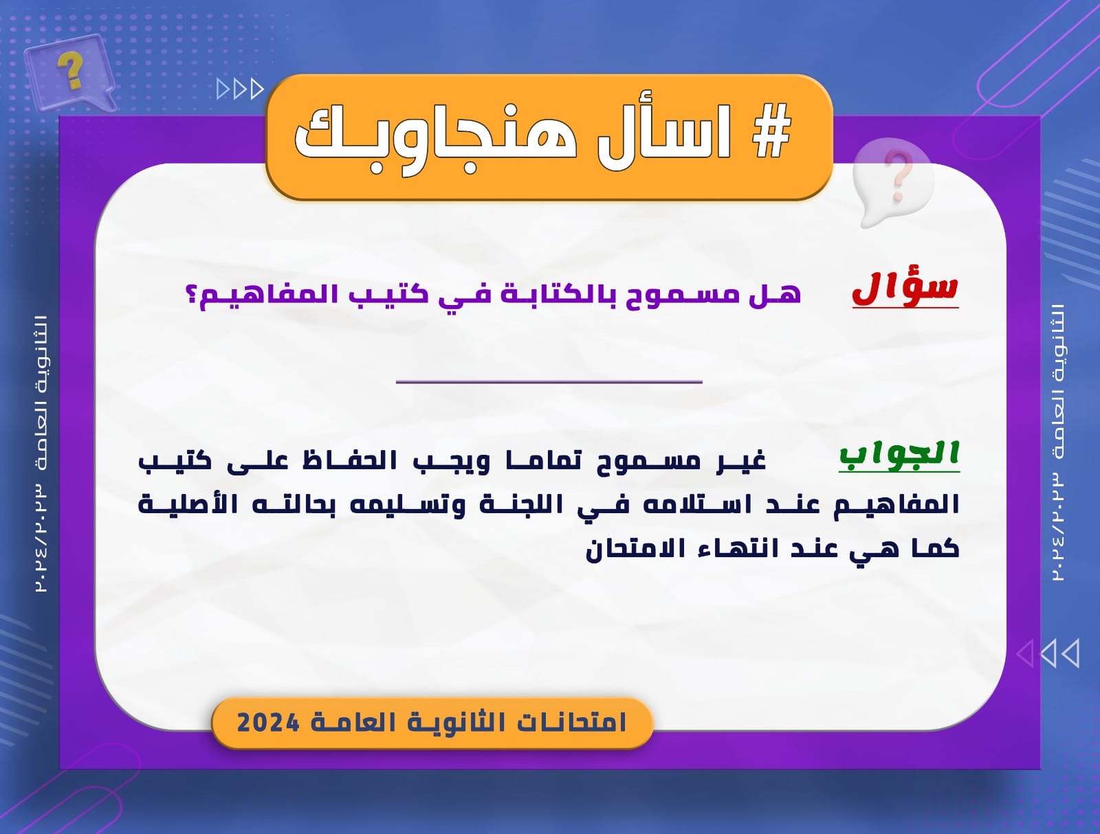 وحرصت وزارة التربية والتعليم والتعليم الفني، على الرد على 11 استفسارا وتساؤلا لطلاب الثانوية العامة 2024، وأولياء الأمور قبل انطلاق امتحانات نهاية العام 10 يونيو.