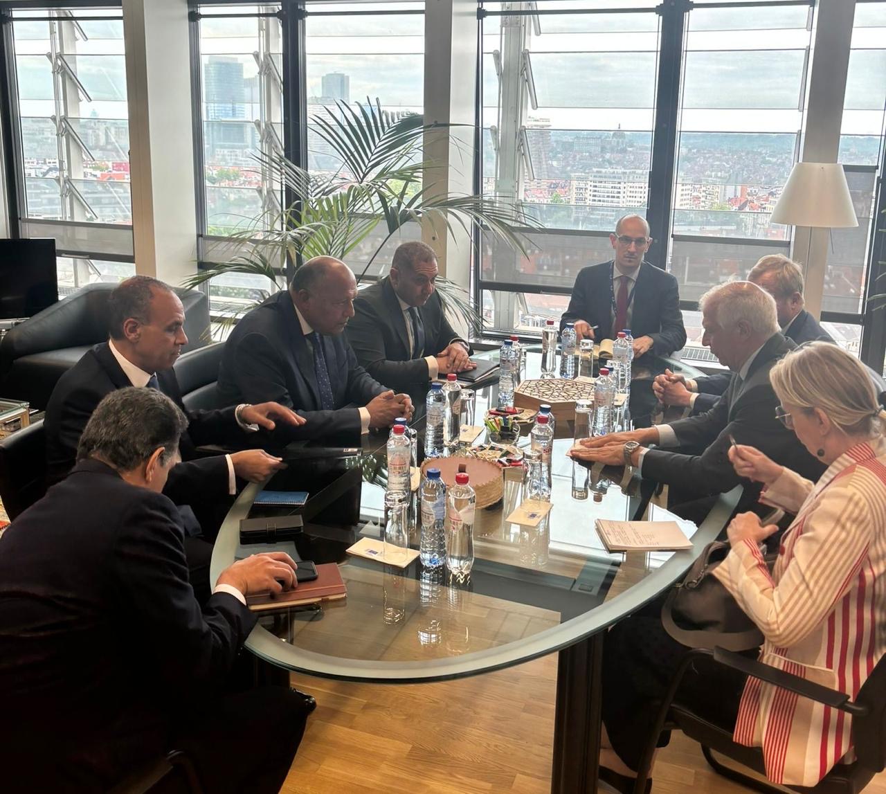 شكري في مستهل زيارته إلى بروكسل: نؤكد ضرورة امتثال إسرائيل لالتزاماتها القانونية