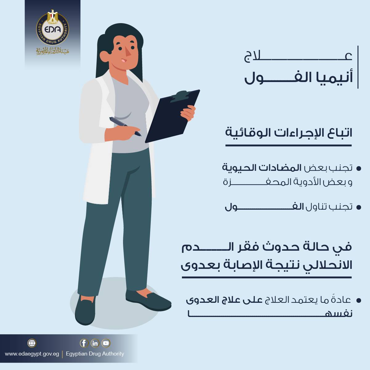 منها تجنب المضادات الحيوية، نصائح هيئة الدواء لمرضى أنيميا الفول