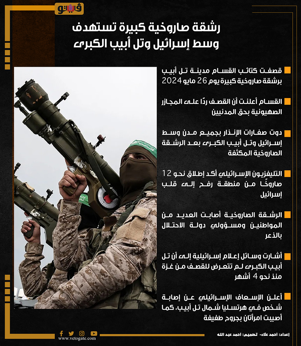 رشقة صاروخية كبيرة تستهدف وسط إسرائيل وتل أبيب الكبرى (إنفوجراف) الإثنين 27/مايو/2024 - 11:31 ص 5/27/2024 11:31:04 AM تل أبيب، فيتو احمد علاء شارك طباعة 18 حجم الخط شارك طباعة تل أبيب كتائب القسام غزة رفح جيش الاحتلال
