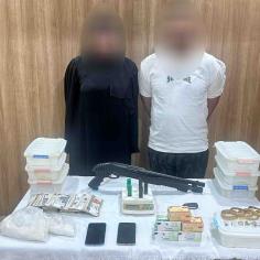 وفي مديرية أمن الجيزة؛ ضبط كلًا من عاطل، "له معلومات جنائية" وزوجته بدائرة مركز شرطة كرداسة وبحوزتهما (2 كيلو جرام لمخدر الآيس – 500 قرص مخدر - بندقية خرطوش وعدد من الطلقات – مشغولات ذهبية – ميزان حساس).
