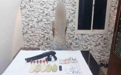 كما تم ضبط عاطل، له معلومات جنائية؛ بدائرة مركز شرطة ميت غمر، وبحوزته (3 كيلو جرام لمخدر الحشيش – كمية لمخدر الهيروين – 500 قرص مخدر لعقار "الكبتاجون" - بندقية آلية وعدد من الطلقات و2 خزينة).