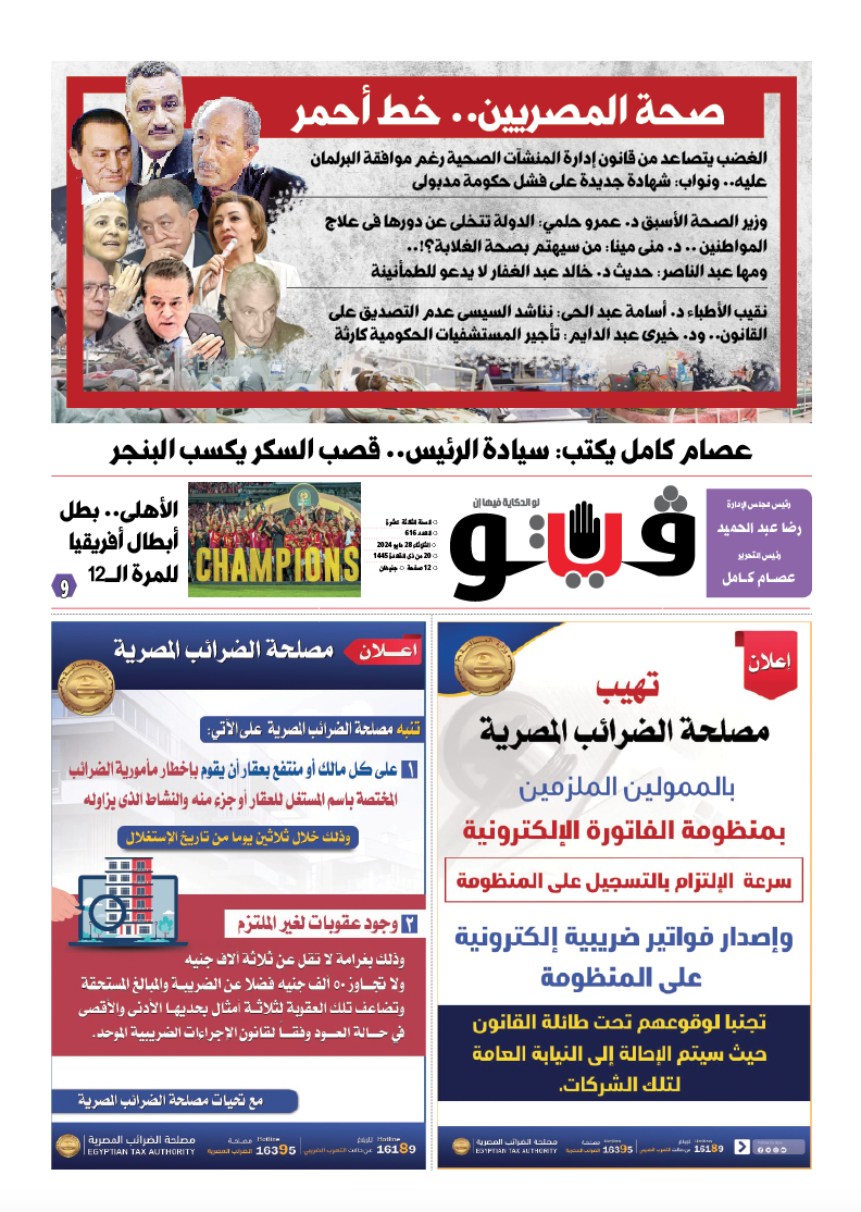 فيتو تكشف في عددها الجديد، صحة المصريين.. خط أحمر