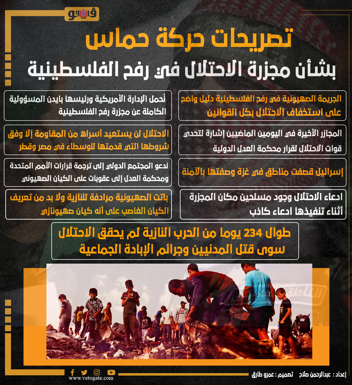 تصريحات حركة حماس بشأن مجزرة الاحتلال في رفح الفلسطينية (إنفوجراف) الثلاثاء 28/مايو/2024 - 02:53 ص 5/28/2024 2:53:03 AM تصريحات حركة حماس بشأن مجزرة الاحتلال في رفح، فيتو عبدالرحمن صلاح تصميم :عمرو طارق شارك طباعة 18 حجم الخط شارك طباعة رفح الفلسطينية حكمة العدل الدولية الصهيونية كيان صهيونازي الكيان الصهيونى مجزرة رفح الفلسطينية مجزرة رفح غزة إسرائيل