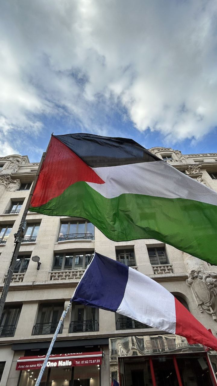 وهتف المشاركون خلال المسيرة، "كلنا أبناء غزة" و"عاش نضال الشعب الفلسطيني" و"الحرية لغزة" و"غزة، باريس معك"، ورفعوا الأعلام الفلسطينية، ووضع البعض كوفيات فيما رفع البعض الآخر لافتات كتب عليها "أوقفوا القصف، الحرية لفلسطين"، و"رفح، غزة نحن معك".