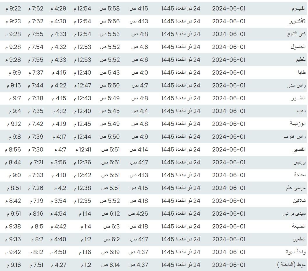 مواقيت الصلاة اليوم بتوقيت أسوان