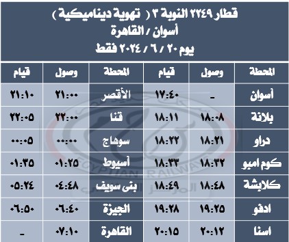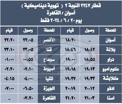 - إيقاف قطارى 1022 / 1023 على خط السد العالى / أسوان وبالعكس.