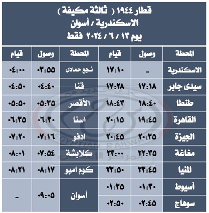 - إيقاف قطارى 732 / 735 على خط سوهاج / نجع حمادى وبالعكس.