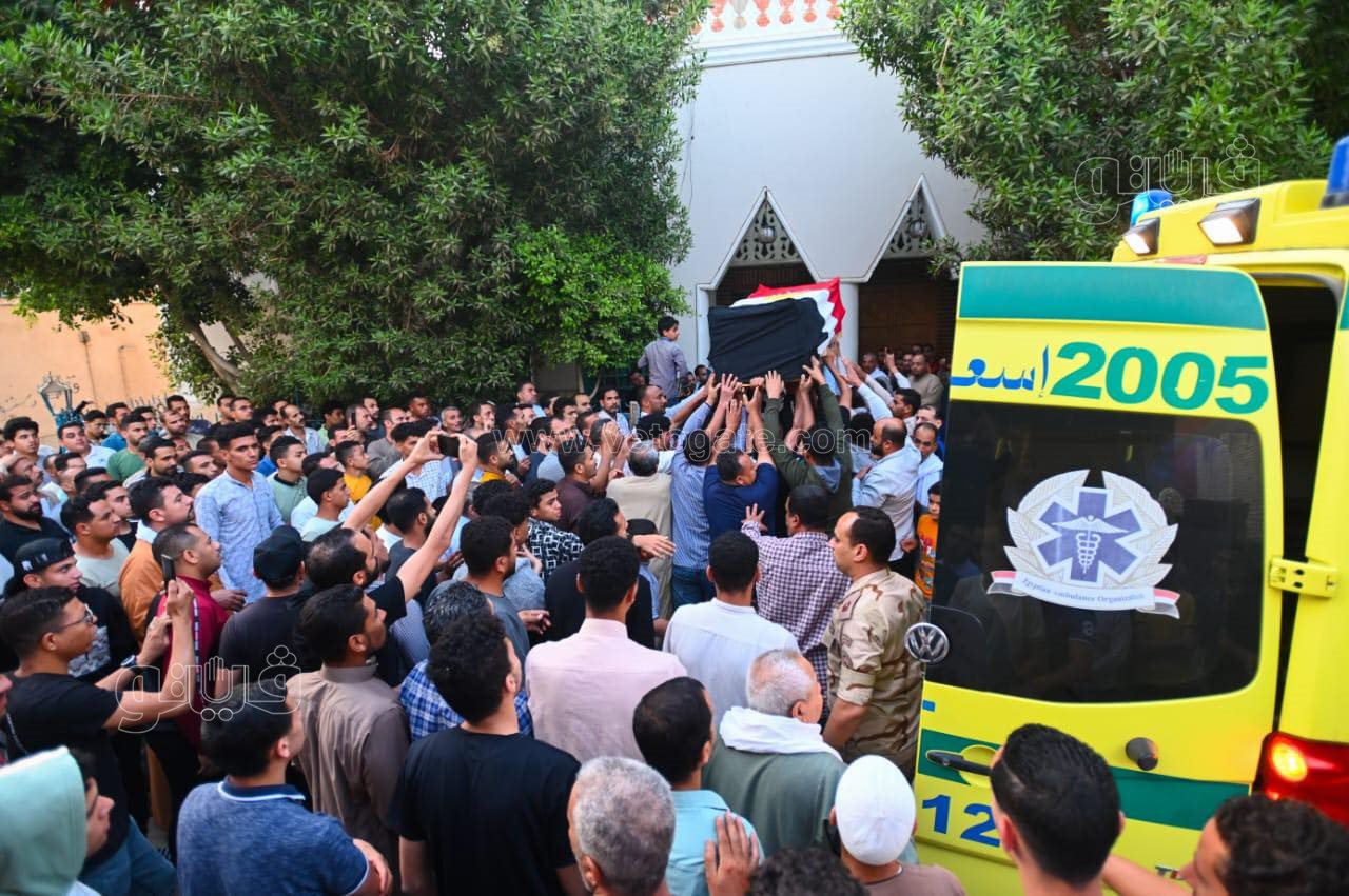 أول صور لجنازة شهيد رفح عبد الله رمضان بمسقط رأسه في الفيوم