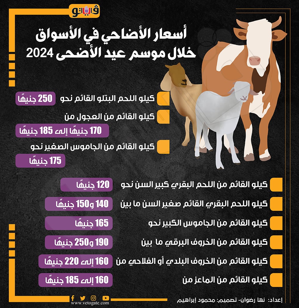 وفي نفس السياق، واستعدادًا لموسم عيد الأضحى 2024، عرضت صفحات على مواقع التواصل الاجتماعي الخاصة بأسعار الماشية، سواء في المزارع أو المربين، والتي تفاوتت أسعارها حسب المنطقة والنوع، إذ تقل أسعار الأضاحي في المناطق الريفية عن الحضرية.