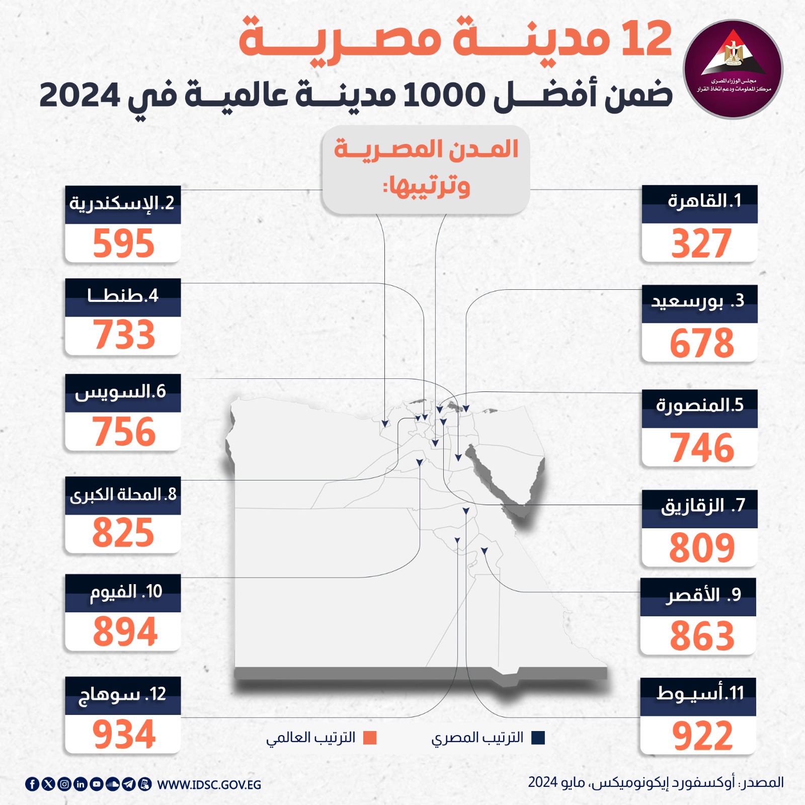 12 مدينة مصرية ضمن أفضل 1000 مدينة عالمية في 2024 (إنفوجراف)