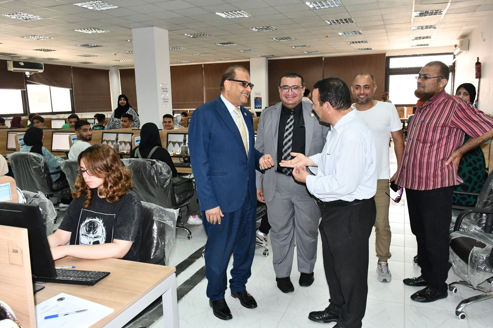 وقام الدكتور عادل حسن نائب رئيس الجامعة للشئون الأكاديمية لجامعة الإسماعيلية الجديدة الأهلية بجولة تفقدية داخل المعامل الإلكترونية، اطمئن خلالها على حسن سير الامتحانات، والتزام الطلاب بالقواعد، كما أجرى حوارات مع الطلاب لاستطلاع آرائهم حول الامتحانات.